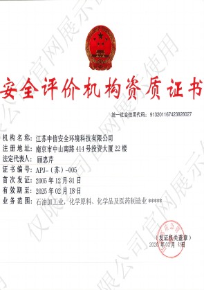 首次取得江蘇省安監(jiān)局頒發(fā)的安全評價機構(gòu)資質(zhì)證書