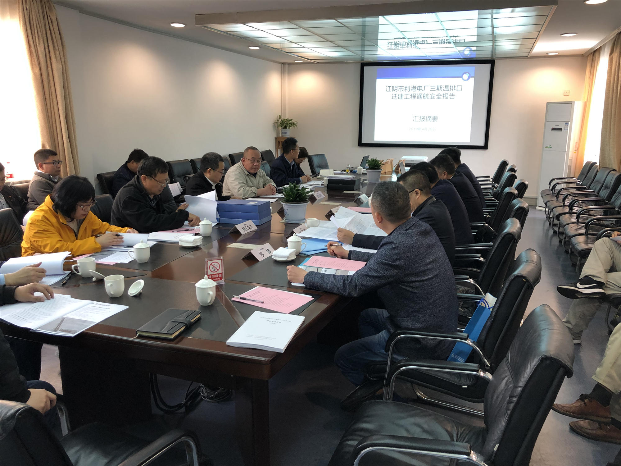 2019年4月28日,江陰海事局在江陰組織召開了江陰市利港電廠三期溫排口遷建工程通航核查會(huì)議。參加會(huì)議的有江陰海事局、江陰利港發(fā)電股份有限公司(業(yè)主單位)、中設(shè)設(shè)計(jì)集團(tuán)股份有限公司(設(shè)計(jì)單位)、中海工程建設(shè)總局有限公司(施工單位)、上海??乒こ套稍冇邢薰荆ūO(jiān)理單位)、江蘇中信安全環(huán)境科技有限公司(報(bào)告編制單位)代表以及特邀專家。